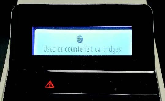 When you first install the cartridge,you will see the message, “used orcounterfeit cartridges”.